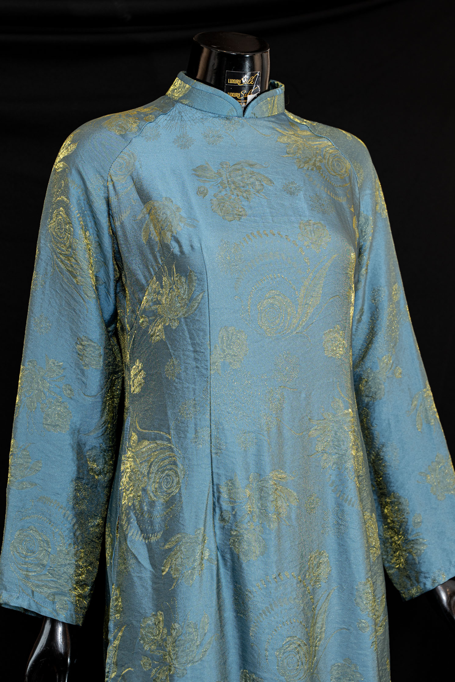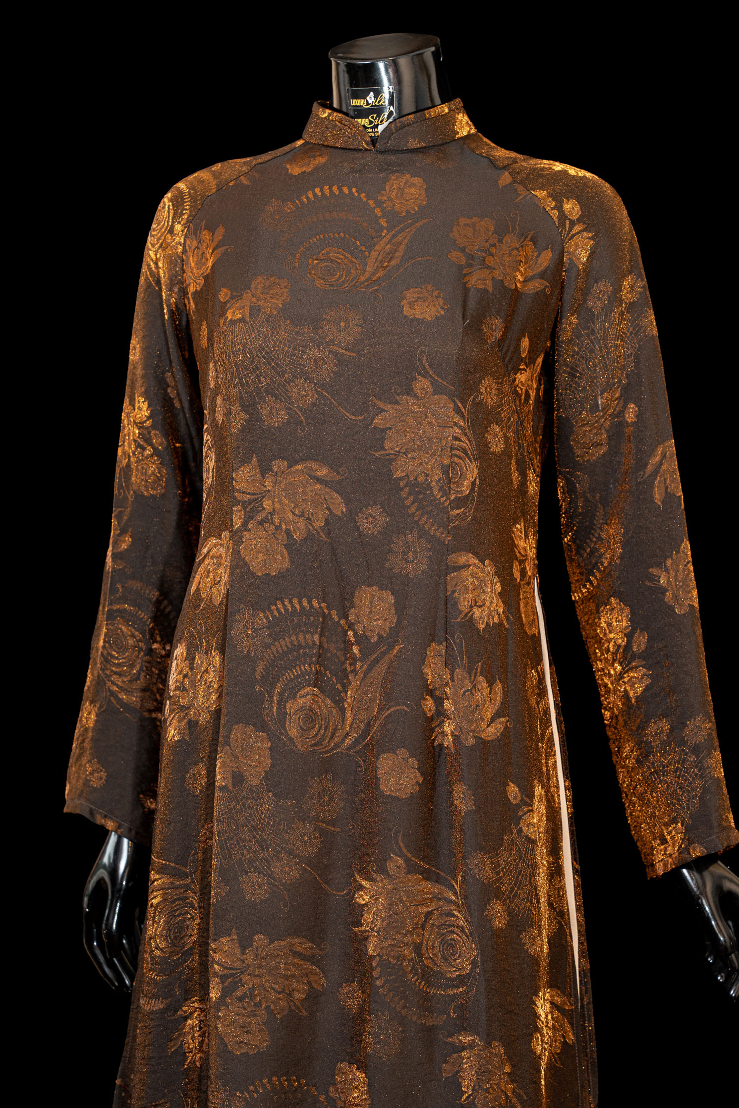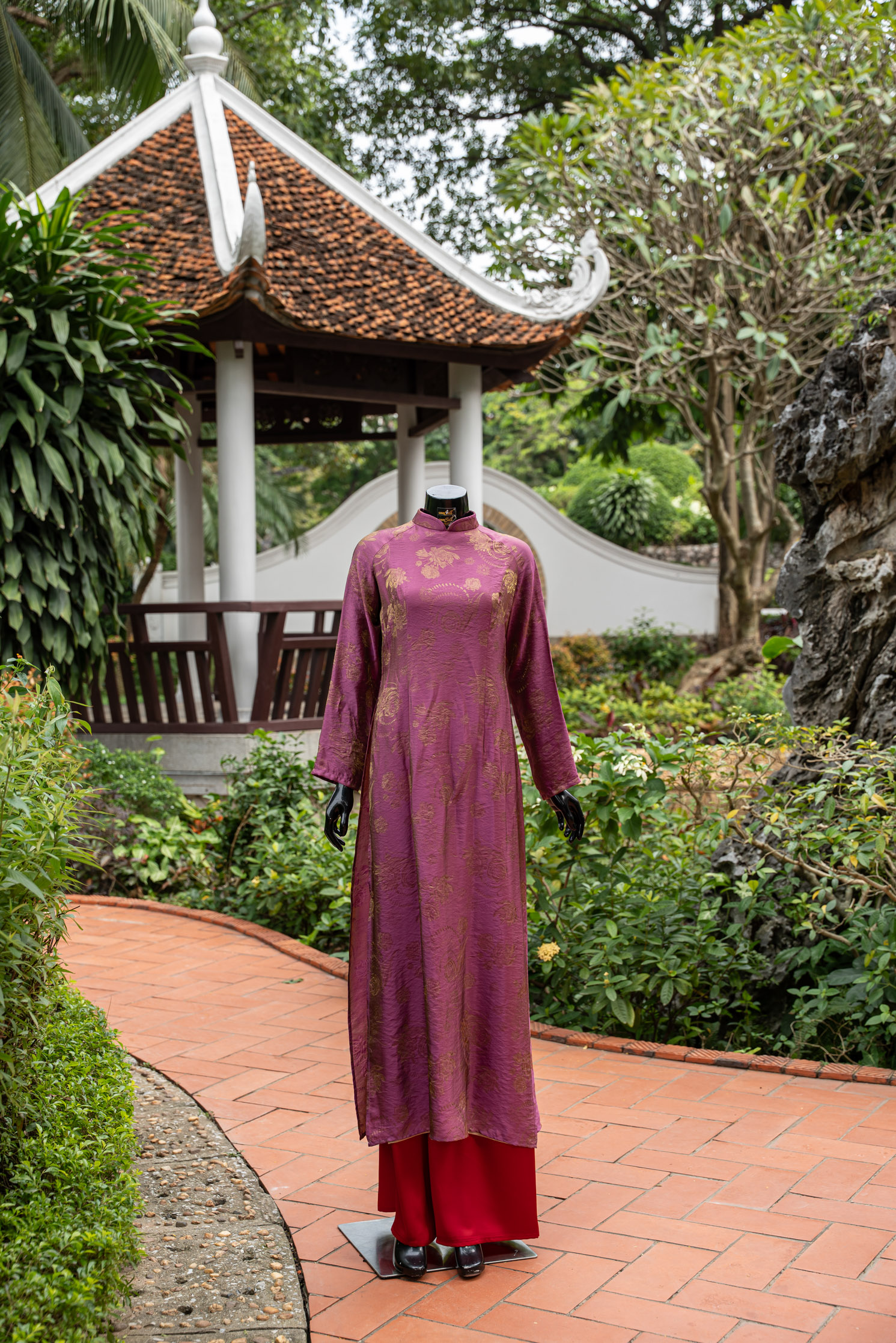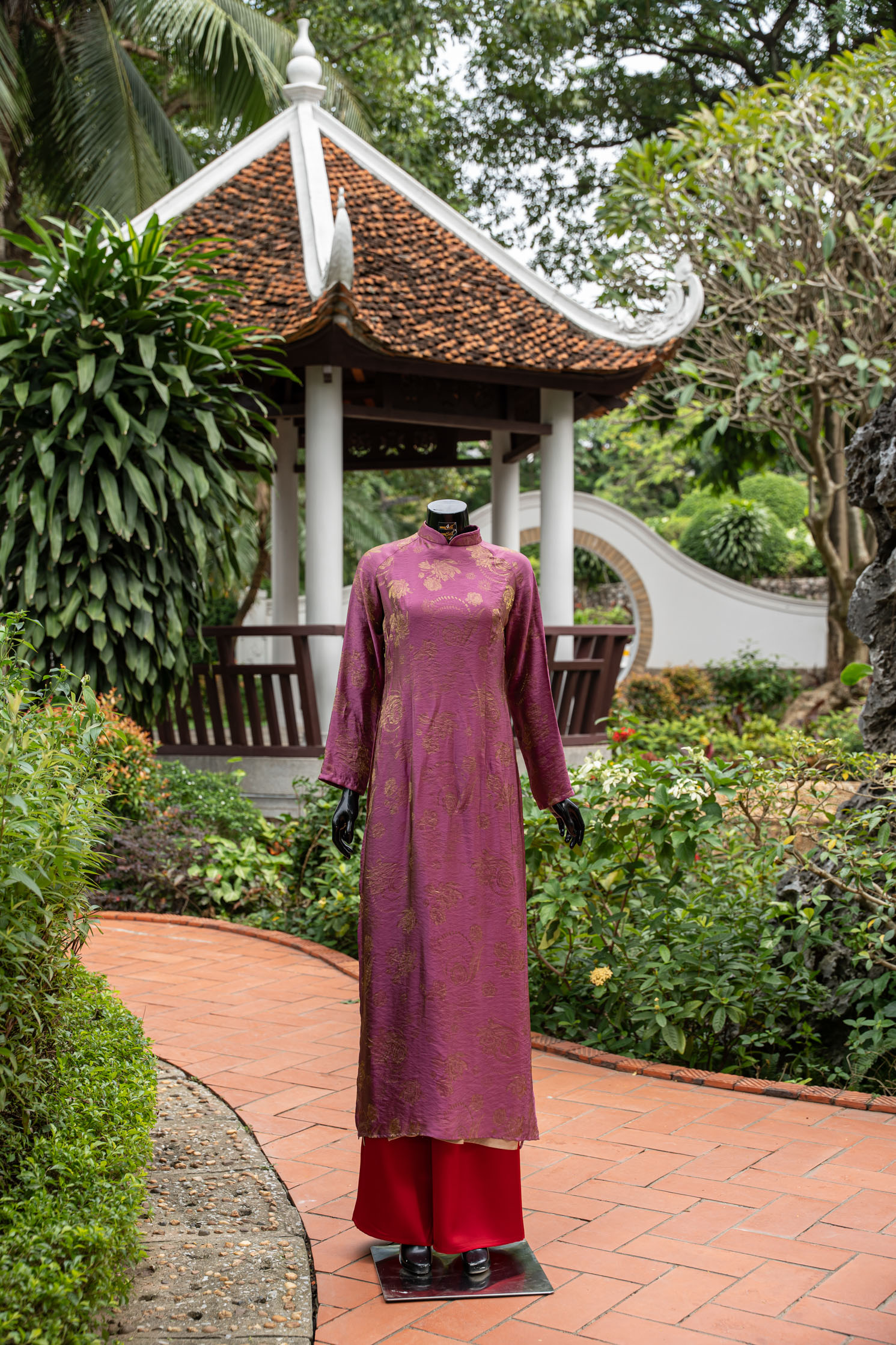 Chất liệu lụa cao cấp, bề mặt óng nhẹ, thoáng mát và rủ mềm, tạo độ uyển chuyển theo từng bước chân.