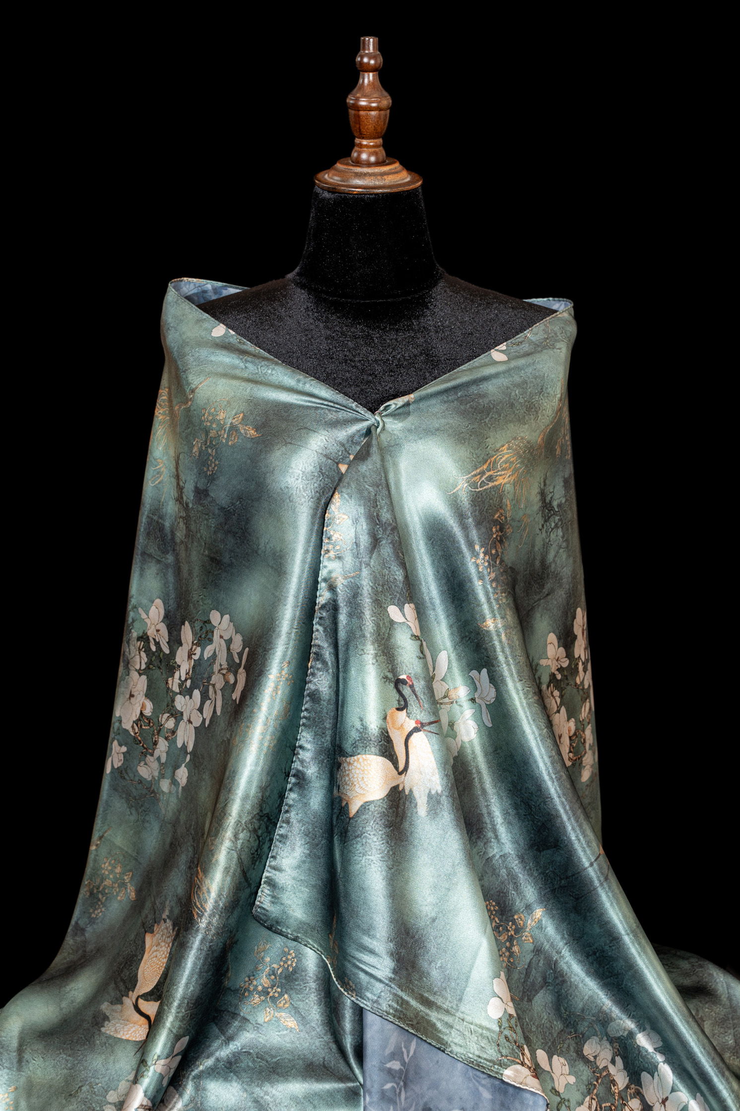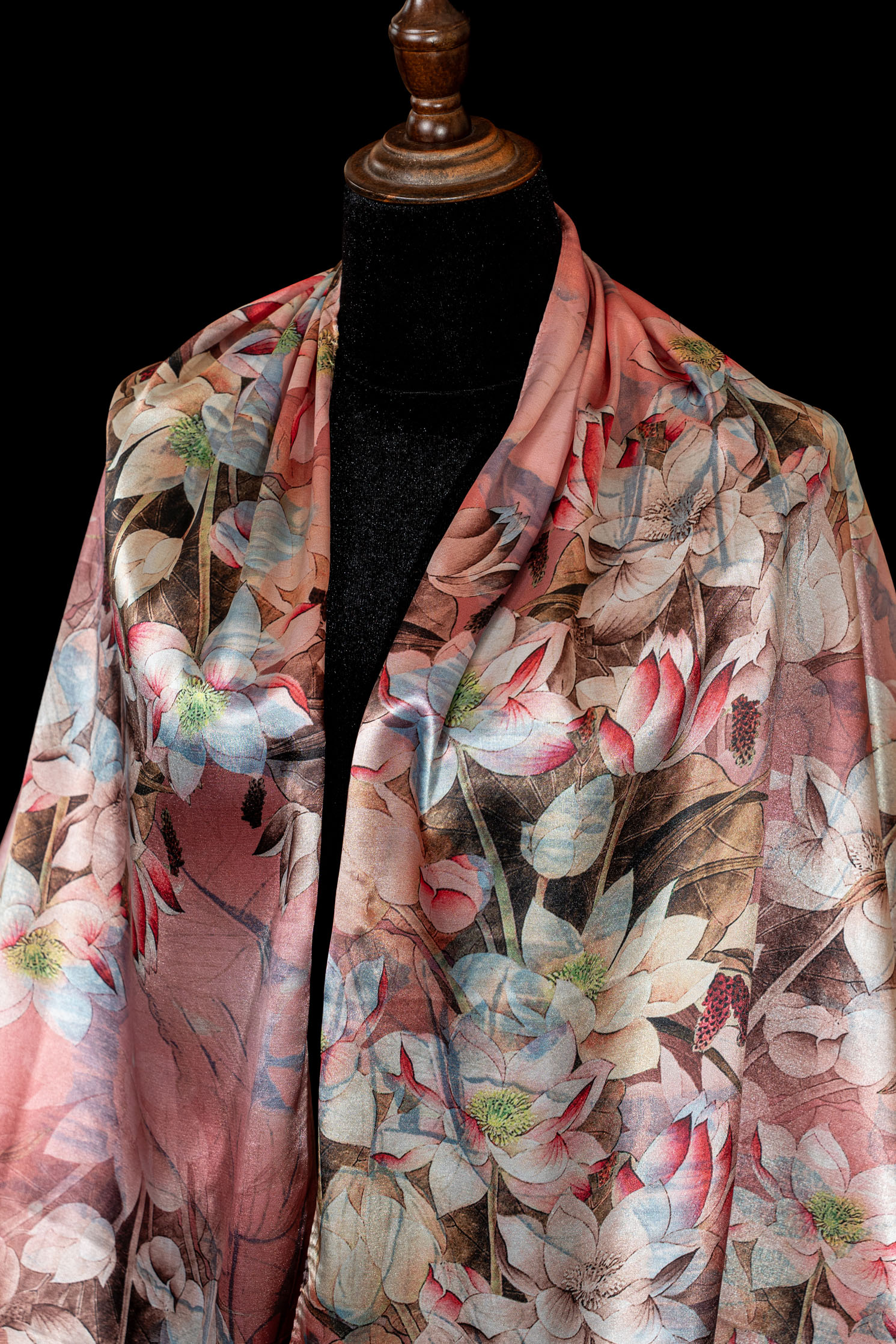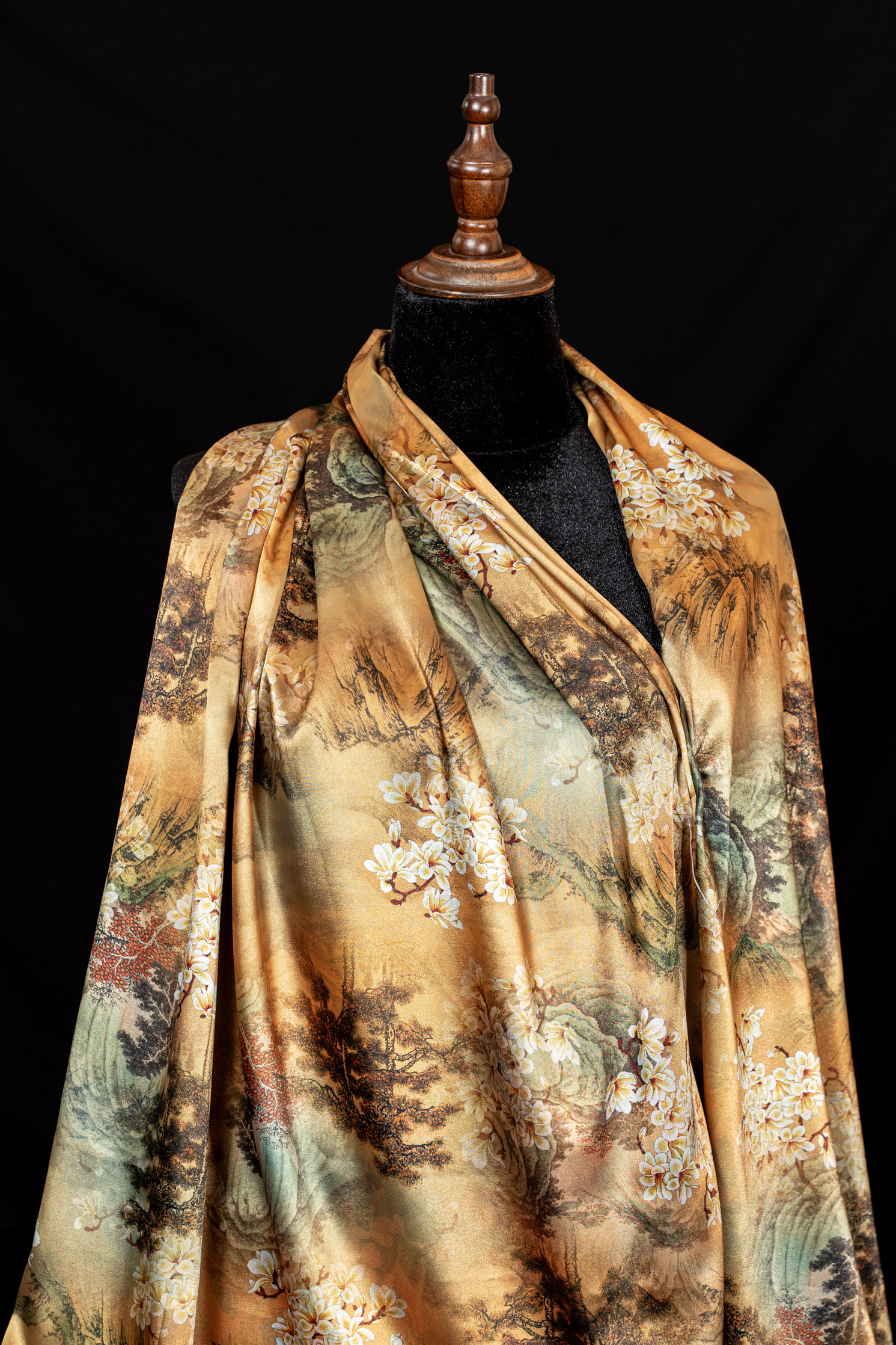 Khăn choàng Đại Lâm Mộc mang tinh thần mộc bản và vẻ đẹp trầm lắng, gợi nhắc sự giao hòa giữa con người và thiên nhiên. Trên nền chất liệu được xử lý tinh tế, sản phẩm thể hiện phong thái điềm đạm, sang trọng nhưng không phô trương, phù hợp với lối sống thanh lịch và sâu sắc.