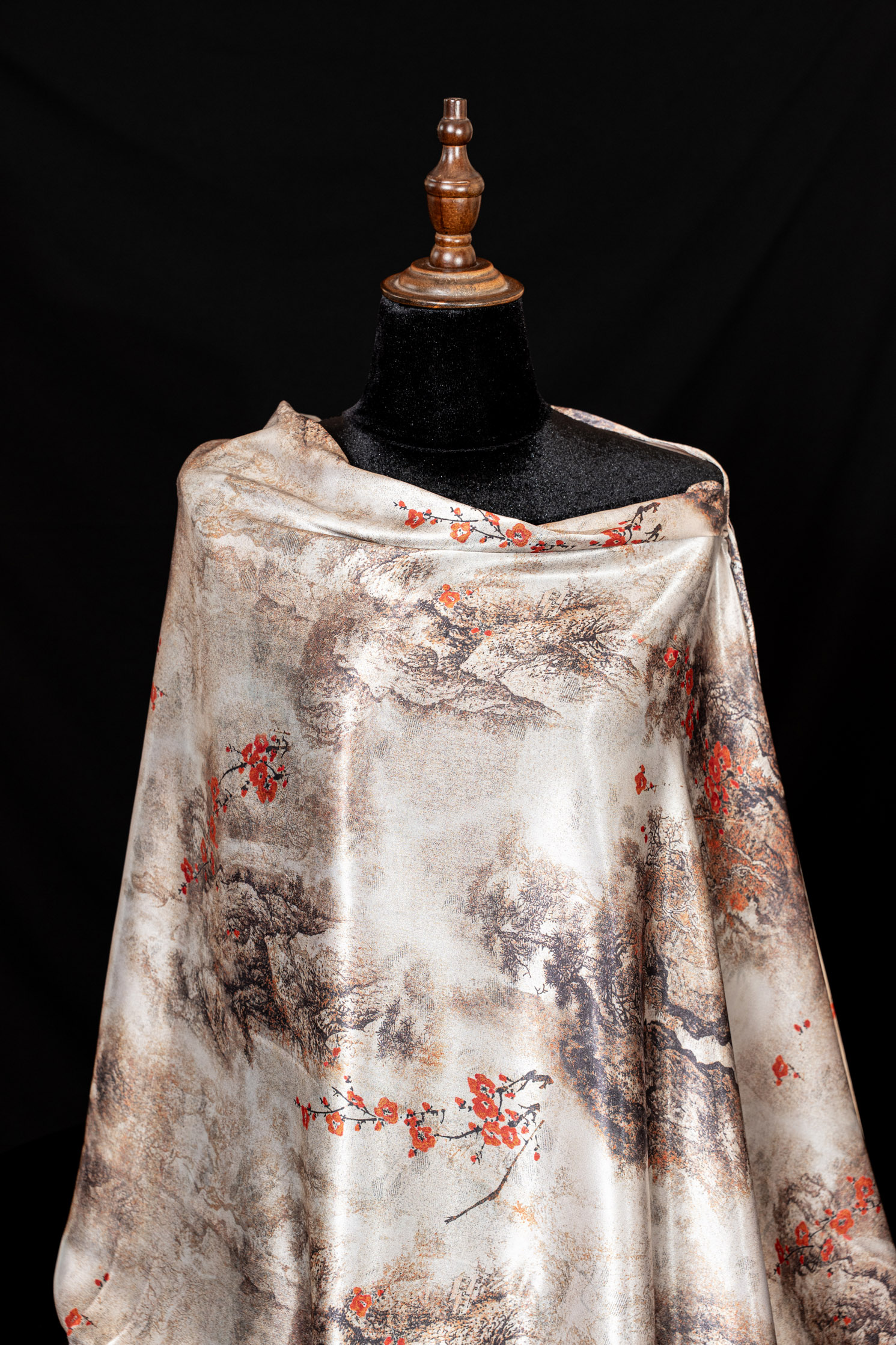 - Bề mặt vải có độ đứng vừa, tạo phom dáng thanh lịch khi choàng.