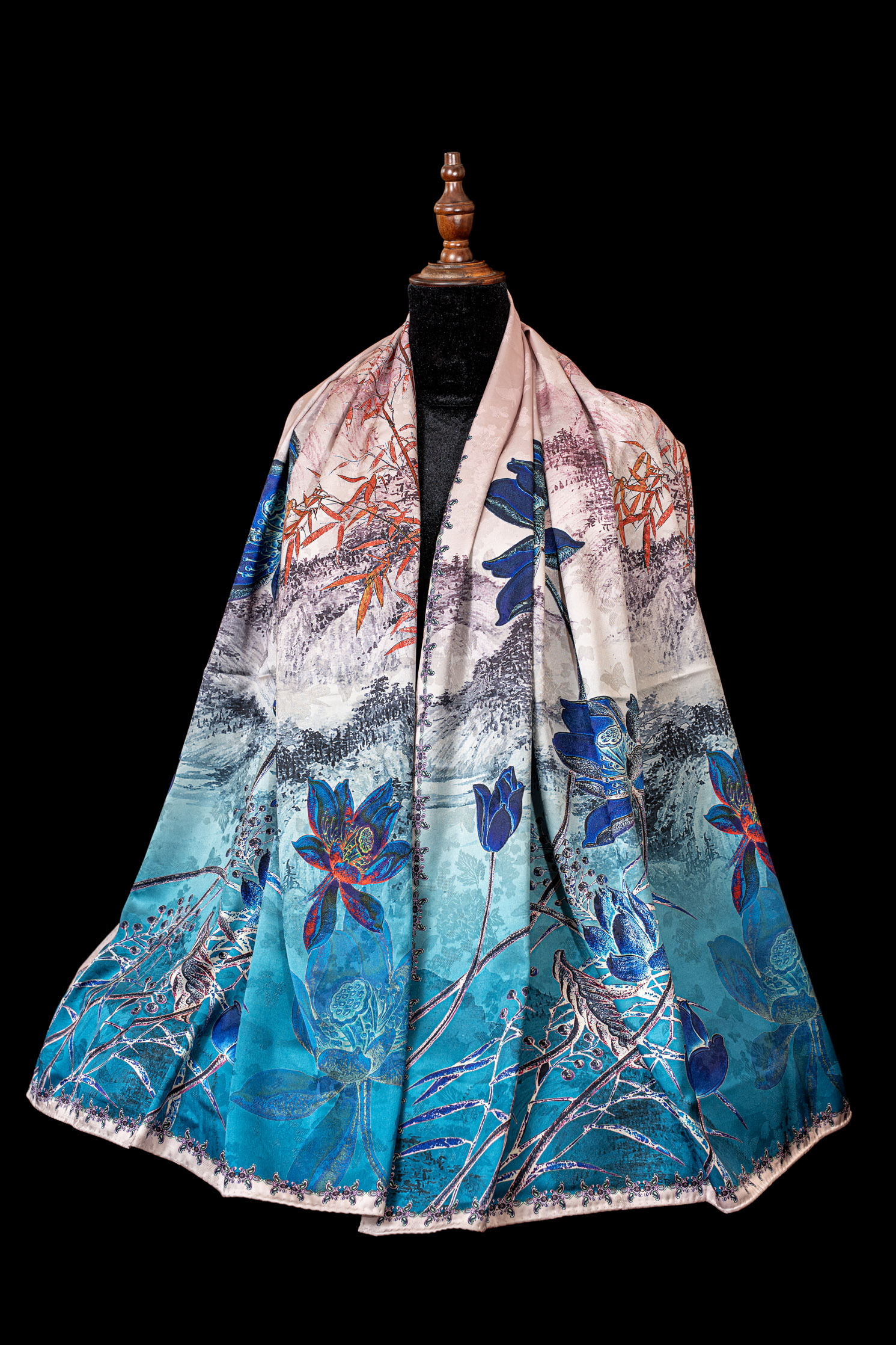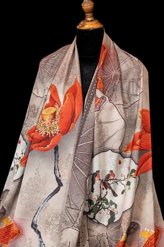Khăn Choàng Lụa Cao Cấp 4D – Chiều Sâu Nghệ Thuật Trên Nền Lụa