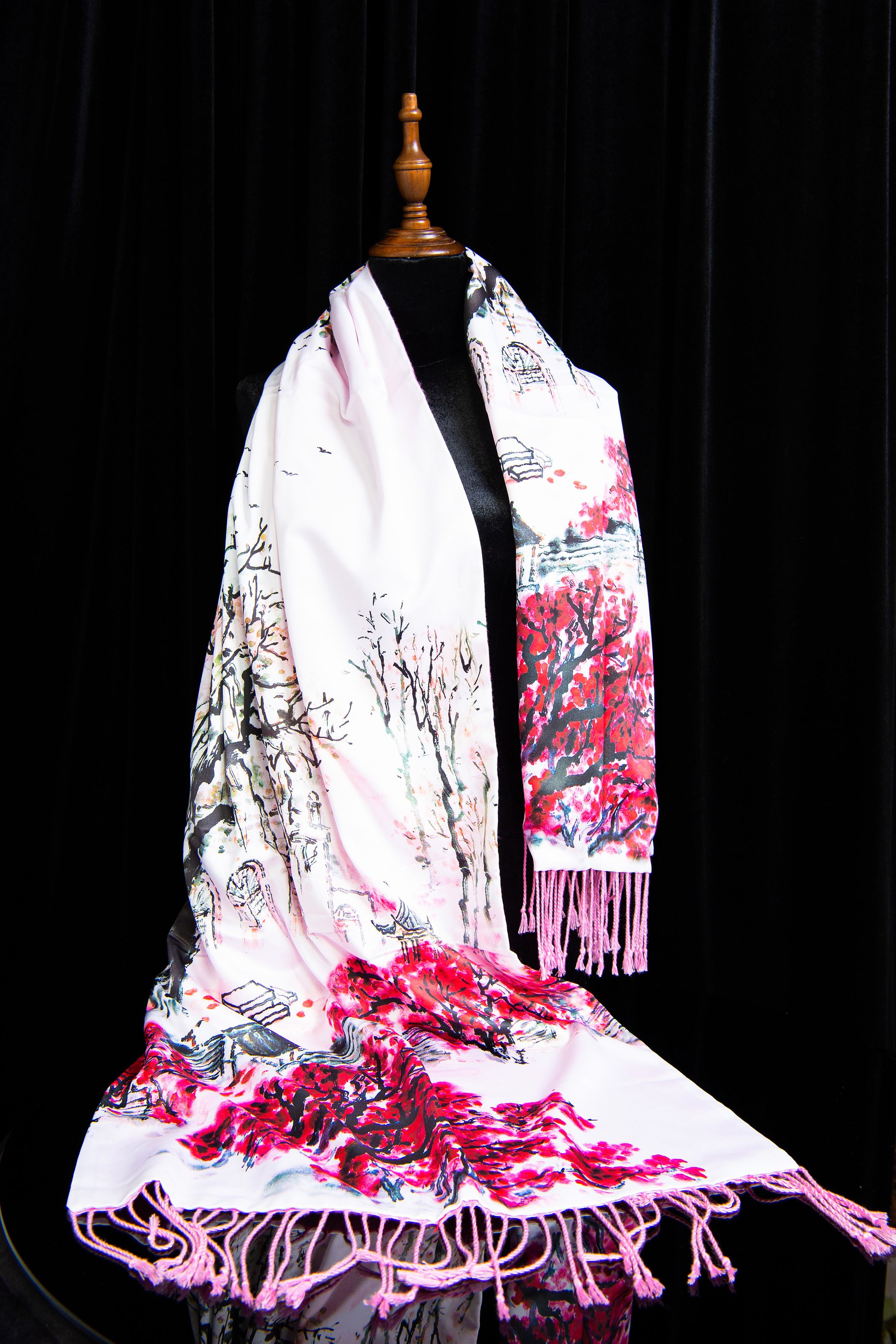 Khăn choàng Lụa 2 lớp Hoạ tiết Hoa( mã 2910 2 lớp)